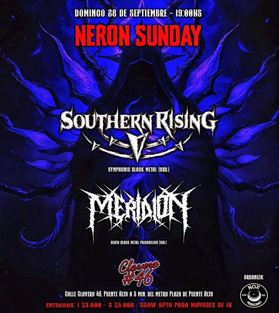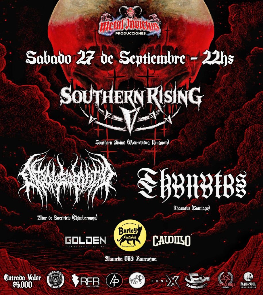 Con tres noches cargadas de potencia, riffs extremos y atmósferas oscuras, Southern Rising se prepara para dejar su huella en la escena chilena. Una oportunidad única para vivir de cerca la intensidad del death metal sinfónico en su máxima expresión.